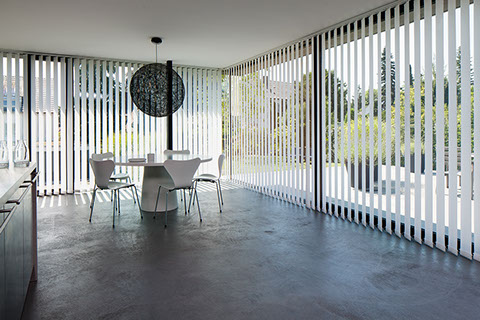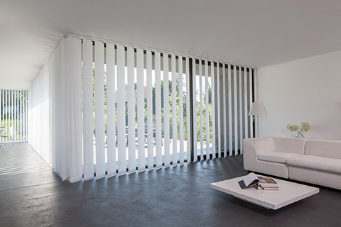 Ist leistungsfähige Lichtmodulation am Fenster gewünscht, sind  Vertikal-Jalousien die richtige Wahl bei der Planung Ihres Projekts. Je nach Sonnenstand erlaubt die Bedienung des Behangs, der aus einzelnen Lamellen besteht, eine optimale Licht- und Sichtregulierung. Dank Perlex- oder anderen Funktionsbeschichtungen auf der Rückseite der Lamelle können einfallende Lichtstrahlen wirkungsvoll reflektiert werden und damit einen hervorragenden Sicht- und Blendschutz in der modernen Kommunikations- und Arbeitswelt und speziell an Bildschirmarbeitsplätzen bieten. Für anspruchsvolle Architektur, große Fensterflächen, Türen, Oberlichter, viele Sonderformen und als Raumteiler sind sie die ideale Lösung, wenn es um eine wirkungsvolle, zweckorientierte und ästhetische Beschattung geht. Außerdem lassen sich mit den einzelnen Lamellen gekonnt Akzente, Kontraste oder Farbverläufe – passend zur jeweiligen Stilrichtung im Raum – konzipieren.  Vertikal-Jalousien regulieren die Lichtverhältnisse in feinsten Abstufungen je nach gewünschtem Wirkungsgrad und sind damit besonders flexibel einsetzbar.